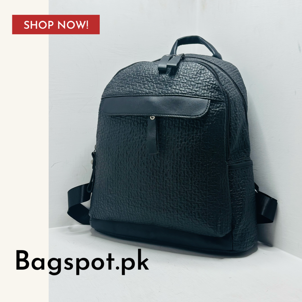 The Solo Backpack is crafted from high-quality imported textured leather, ensuring durability and a refined look. Featuring medium size dimensions and an imported zipper, this shoulder bag offers ample space and smooth functionality. Newly in stock, it combines premium materials with expert craftsmanship. Available for cash on delivery with reliable shipping across Pakistan.